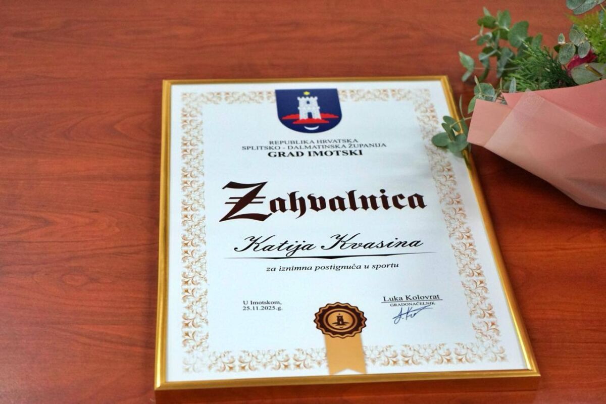 Zbog ovog uspjeha Katju i njezina trenera Franu Kutlešu jučer je primio gradonačelnik Imotskog Luka Kolovrat, koji im je čestitao na izvrsnom rezultatu.