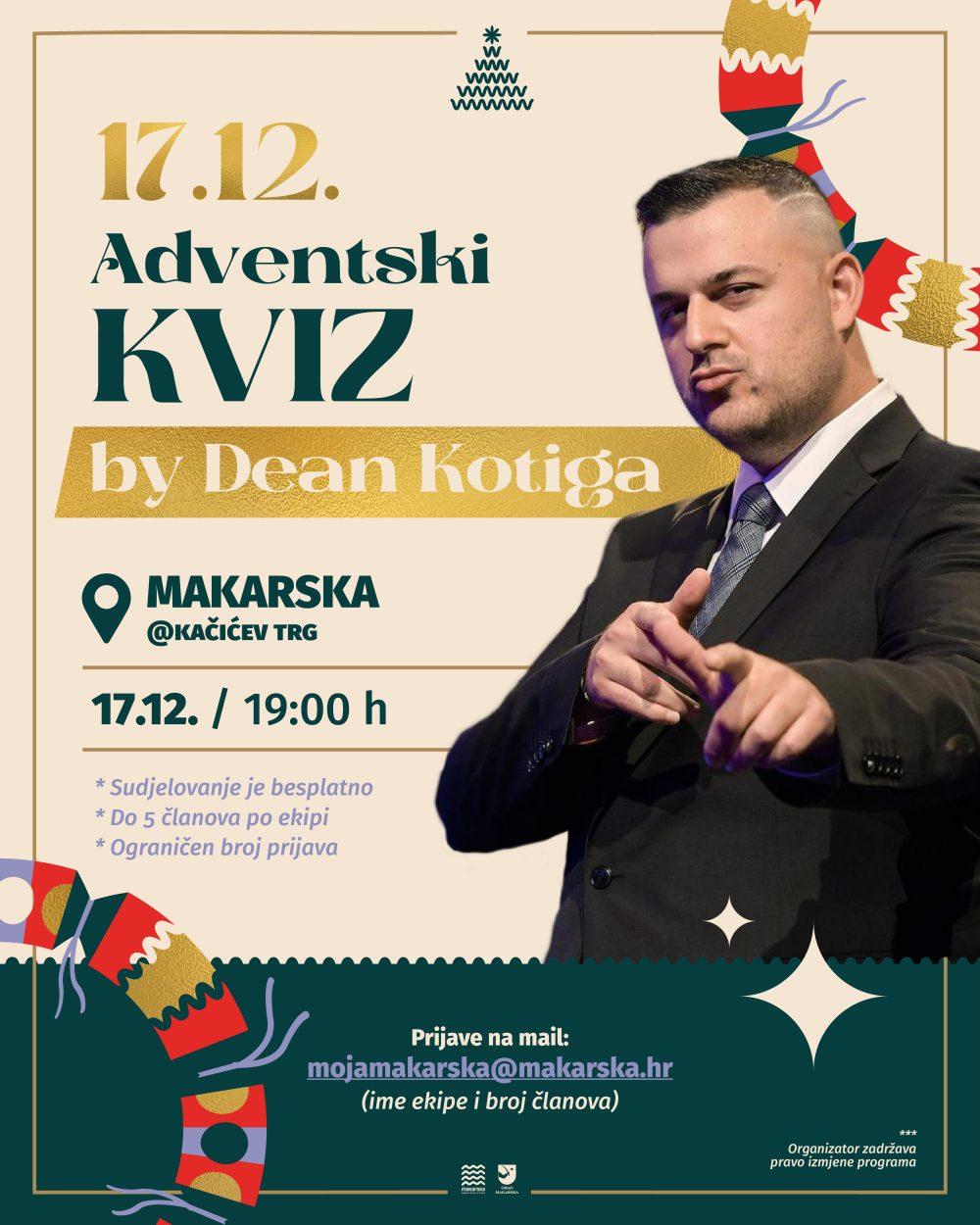 Udarni predbožićni vikend započinje već večeras posebnim programskim iskorakom. Dean Kotiga po prvi put održava pub kviz na otvorenom u sklopu Adventa Makarska, uz ugodnu temperaturu i jedinstveni mediteranski ugođaj. Prvi adventski pub kviz u Makarskoj idealna je uvertira u vikend bogat događanjima koji slijedi.