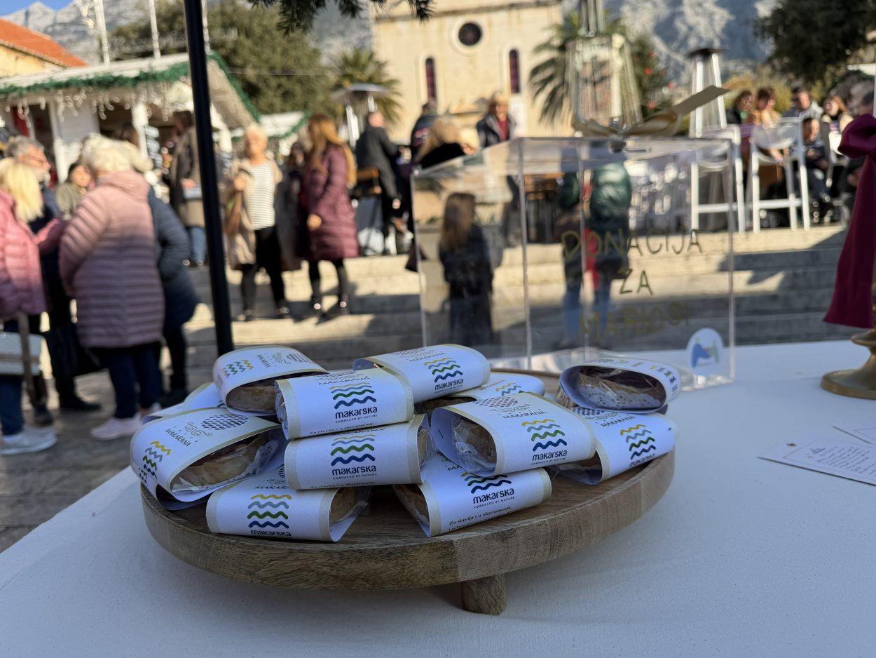 Na Kačićevu trgu u Makarskoj danas je održano humanitarno druženje uz tortu Makaranu. Svi dobrovoljni prilozi prikupljeni tijekom Adventske čajanke namijenjeni su Udruzi Sunce, odnosno društvenom poduzeću MARIOSI.