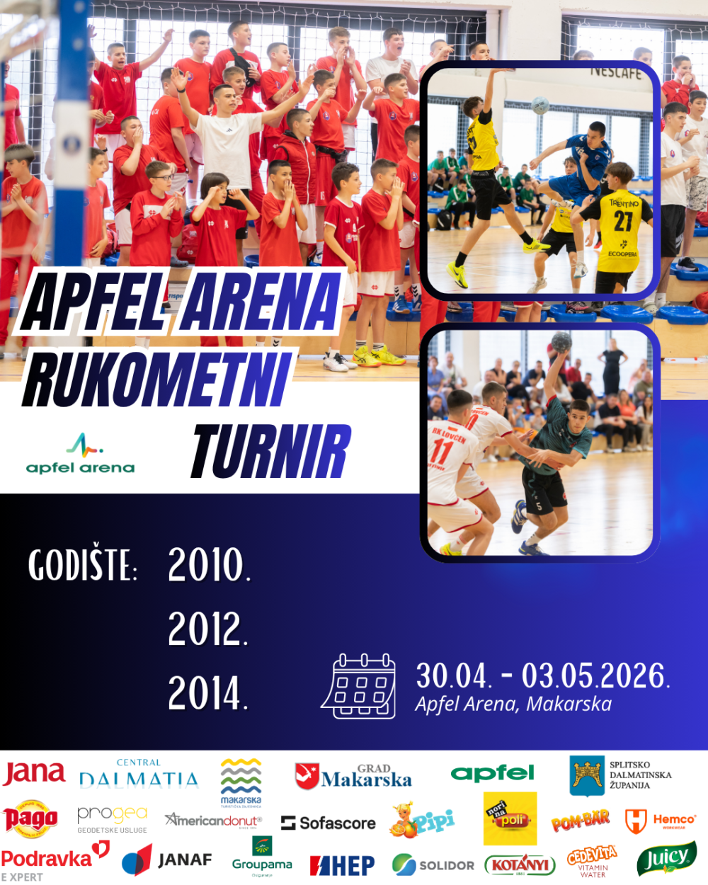 Od 30. travnja do 3. svibnja 2026. Apfel Arena bit će domaćin međunarodnog rukometnog turnira koji u Makarsku dovodi mlade sportaše iz Hrvatske, Italije, Bosne i Hercegovine te Crne Gore.