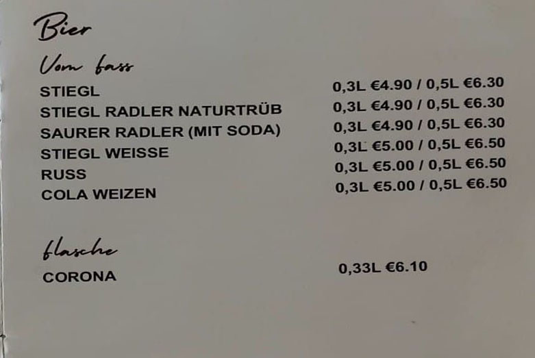 Cijene pića i hrane, kako navodi, odnose se na obične kafiće i restorane u središtu Zell am Seea, a ne na elitne hotele ili klubove. Espresso kava stoji od 3,80 eura naviše. Pivo od pola litre u Austriji kreće se od najmanje 6,30 eura. Pizze srednje veličine, bez velikih porcija, stoje do 22 eura.