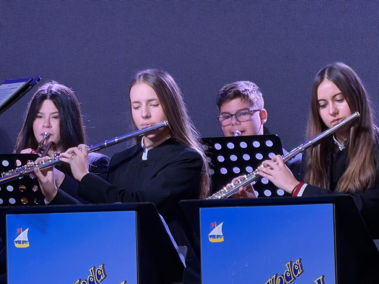 Pod dirigentskom palicom profesora Lovre Livajića, publika je uživala u bogatom i raznolikom božićnom programu, upotpunjenom poznatim skladbama poput Wellerman, Star Wars, Frozen i Game of Thrones.