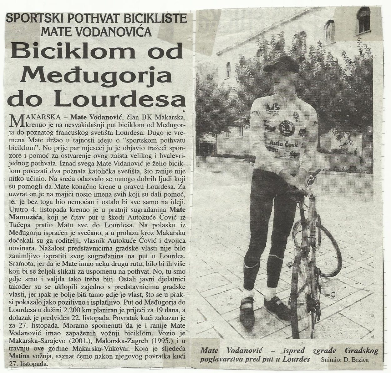 Makarska - Zagreb - Vukovar trajalo je pet dana. Tu dionicu odvozio sam sam, u čast braniteljima 156. brigade i svim poginulima. Nakon toga uslijedila je vožnja Međugorje - Lourdes, uz pratnju Frane Mamužića koji me cijelo vrijeme pratio autom.