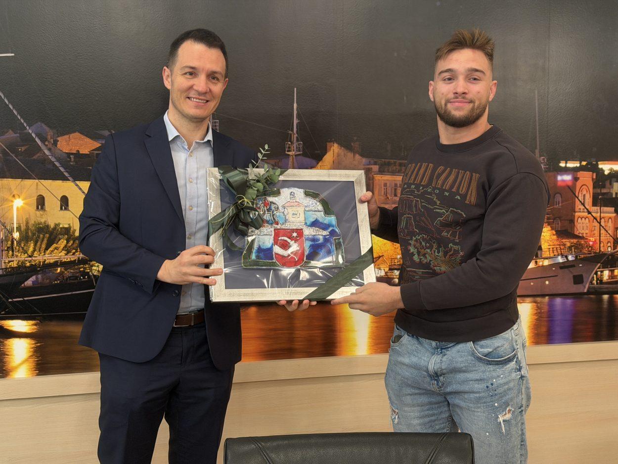 Danas je u Gradskoj vijećnici održan prijem za mladog Makaranina Duju Nizića, koji je na nedavno održanom Svjetskom prvenstvu u jiu jitsuu u Abu Dhabiju osvojio zlatnu medalju i naslov svjetskog prvaka u kategoriji do 94 kilograma. Tom prigodom gradonačelnik mu je uručio sliku s grbom grada kao znak priznanja za izniman sportski uspjeh.