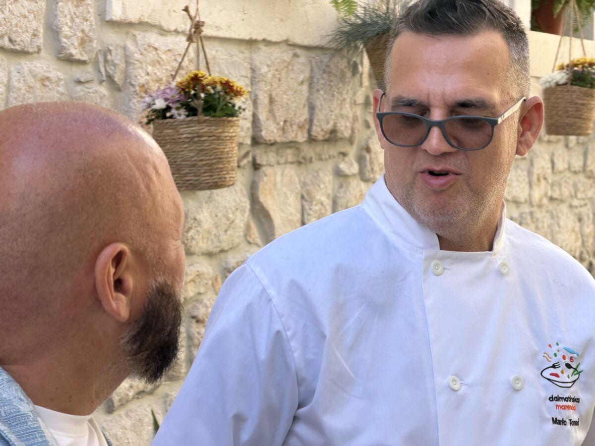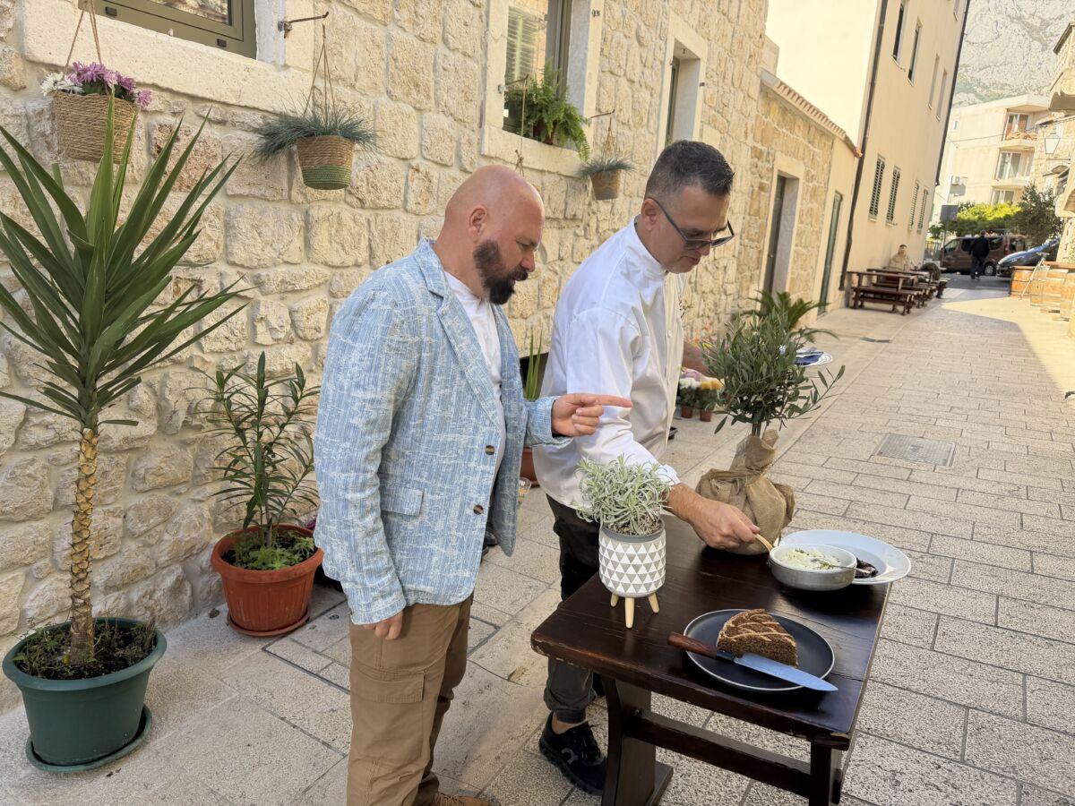 Novinaru Šimi Kovačeviću domaću kuhinju predstavio je Mario Tomaš, vlasnik konobe Kalalarga, koji je pripremao jadranske lignje. Sve je zasladio legendarnom Makaranom najpoznatijom tortom u gradu.