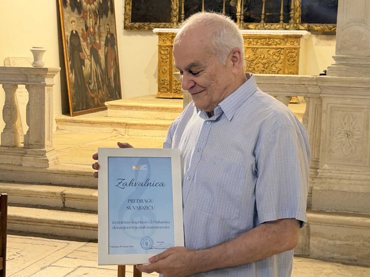 Ovo je koncert zahvale gospodinu Predragu koji je Glazbenoj školi Makarska darovao dva vrijedna instrumenta kao trajni doprinos radu škole. Kao znak zahvalnosti uručili smo mu priznanje za ovu nesebičnu donaciju, rekao je Željko Vlaho, iz Glazbene škole Makarska.