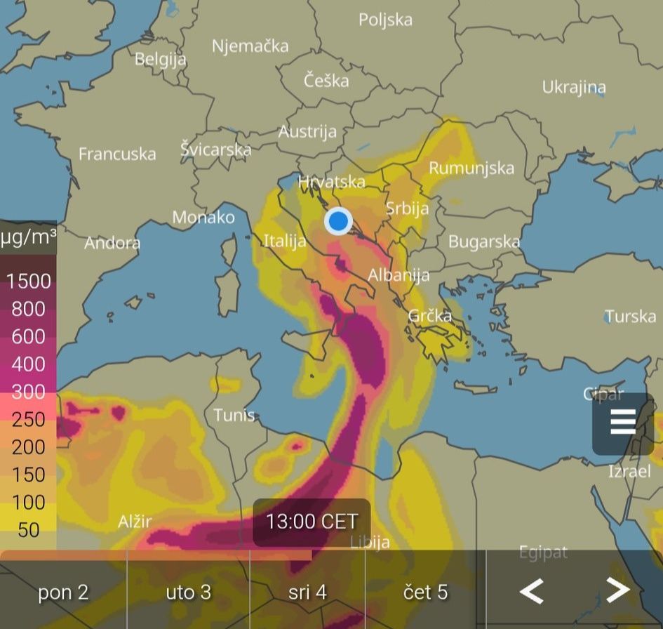 Meteorolozi najavljuju da će u idućim danima veće količine saharske prašine ponovno stići nad Hrvatsku. Nakon kiše taj se pijesak ispire iz atmosfere, ali ostaje vidljiv na automobilima.