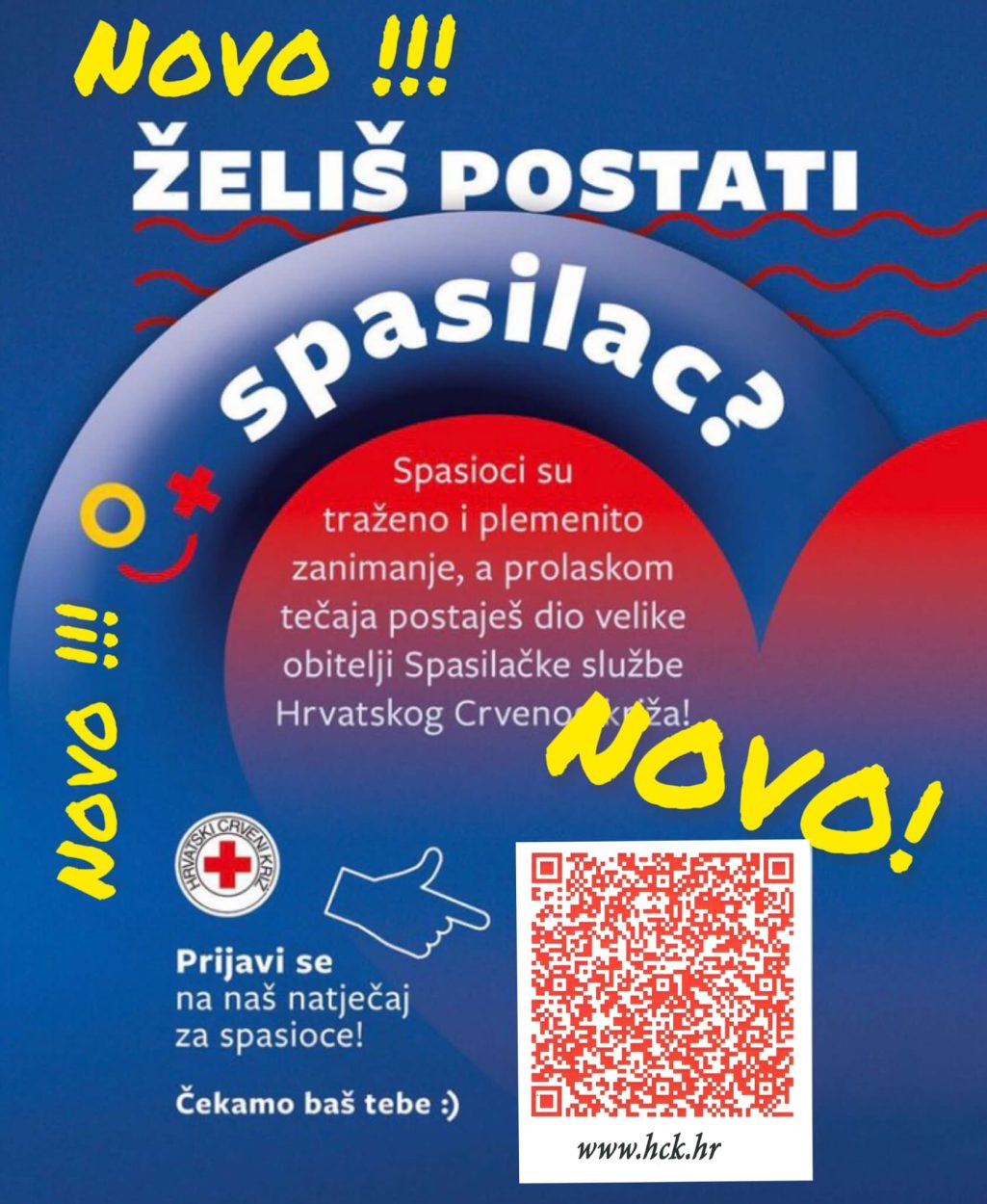 Pozvali su sve zainteresirane mlade da se uključe u rad službe. Danas, od 12 do 13 sati na bazenu Gradskog sportskog centra Makarska održava se besplatno testiranje za nove spasioce, uz prethodno popunjavanje prijavnice na ovom linku PRIJAVA ili pute QR koda.