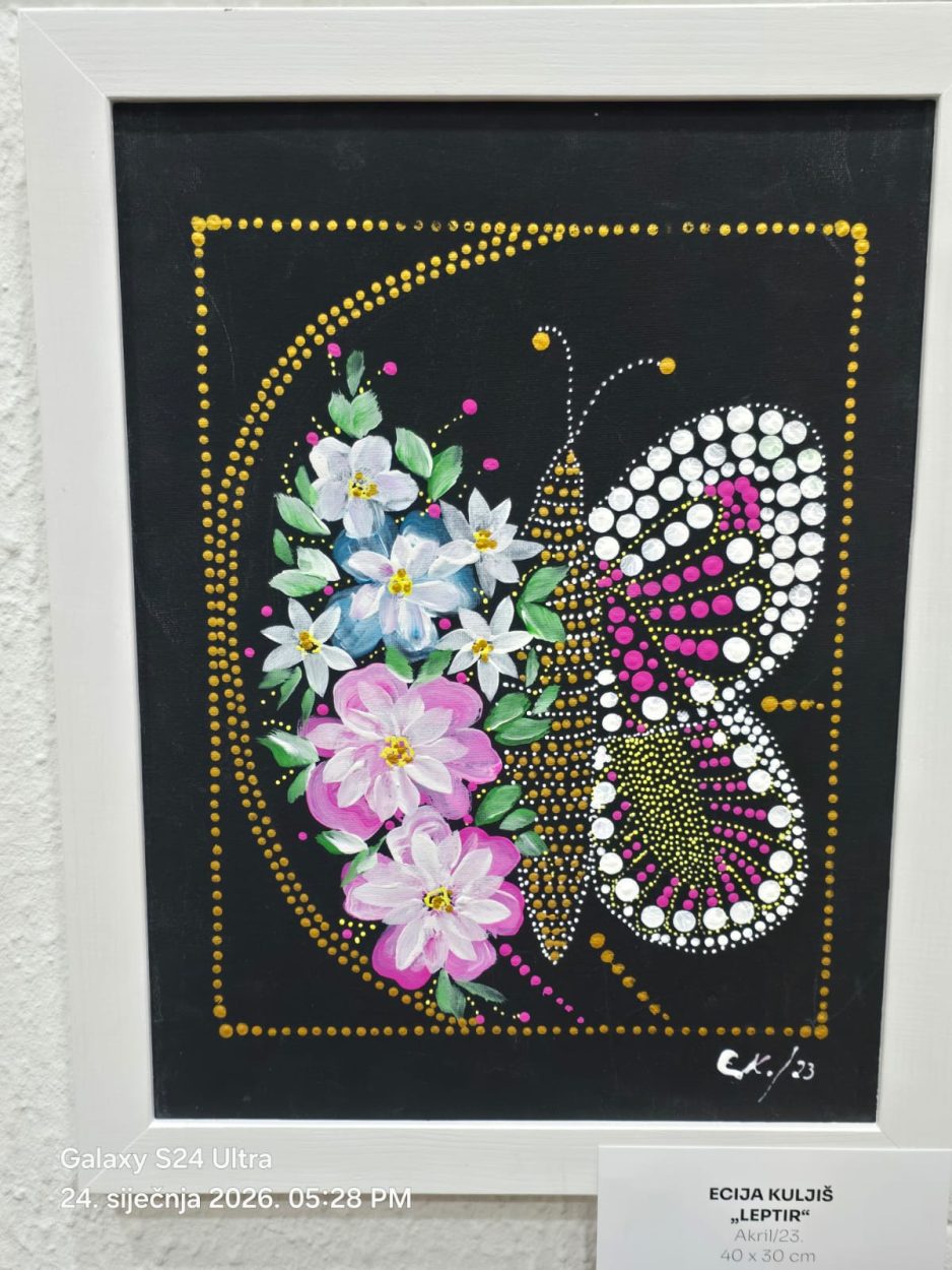 Izložba je otvorena u prostoru Centra Zlatno doba i Udruge MI na Branimirovoj obali 1 u Splitu, a privukla je velik broj posjetitelja. Otvorenje je proteklo u svečanom i vedrom ozračju, uz pjesmu zbora HKD Napredak Makarska.