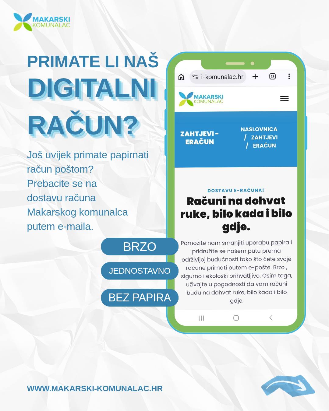 Digitalni račun, kako navode, omogućuje bržu dostavu, bez čekanja pošte i bez rizika od izgubljenih pošiljki, uz smanjenje potrošnje papira.