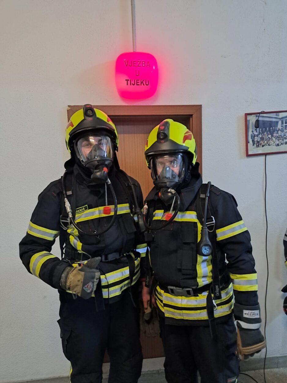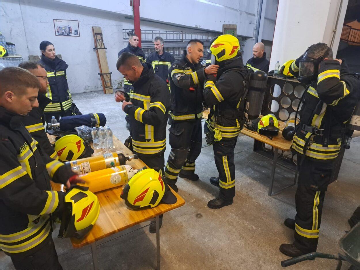 Vatrogasci su u “dimnoj komori” uvježbavali orijentaciju u prostoru bez vidljivosti, kretanje kroz uske prolaze, rad s opremom i timsku komunikaciju u uvjetima visokog stresa.