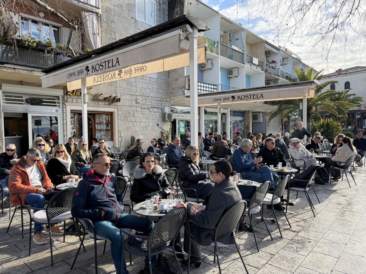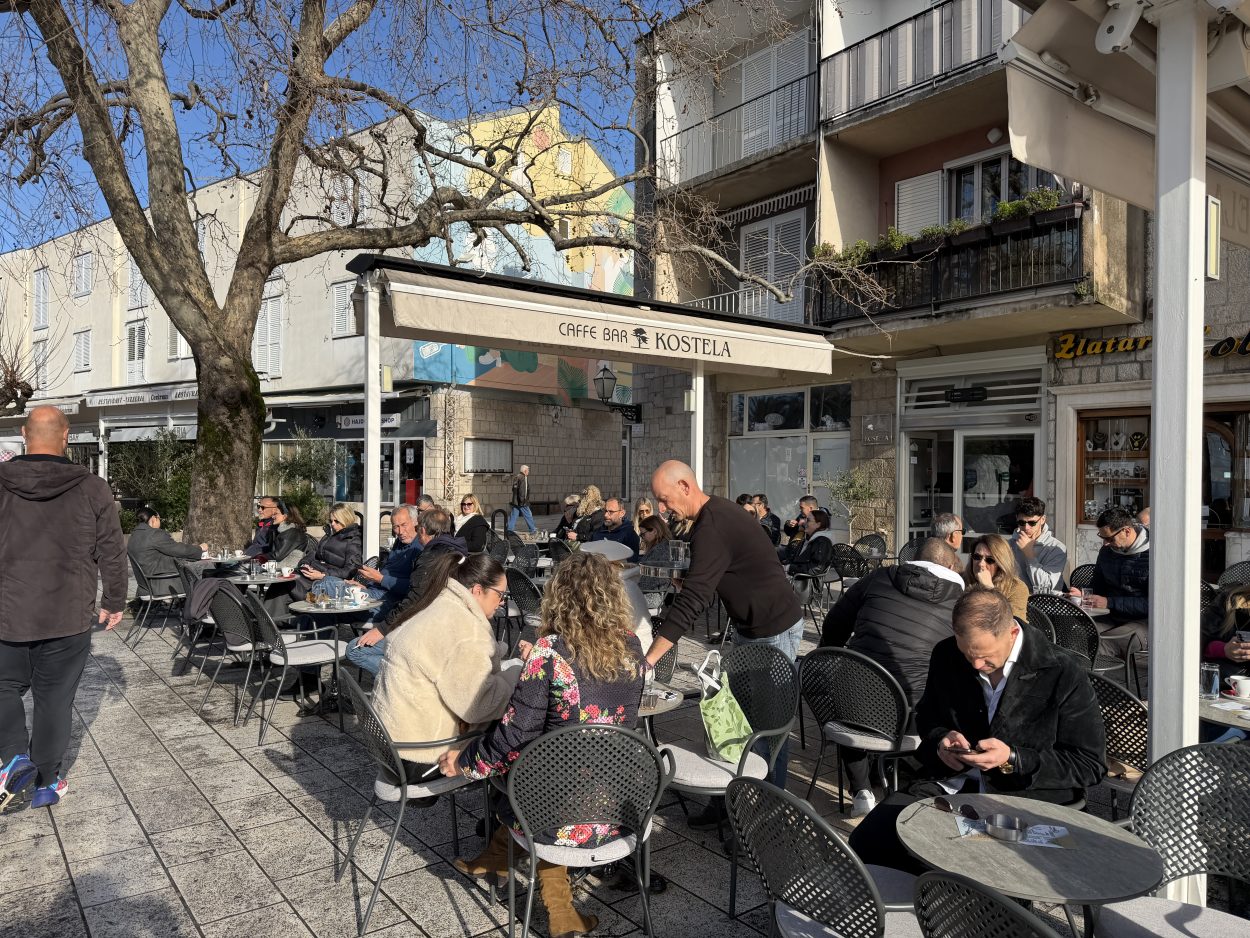 Pojedinci su od kafića napravili svojevrsni ured na otvorenom. Mjesto gdje se dogovaraju poslovi i primaju klijenti, sve uz kavu koja se pije polako, satima. Upravo onako kako se u Dalmaciji i živi. Nakupi se često i računa za manji ručak, ali galantni poduzetnici ga sa zadovoljstvom plaćaju.