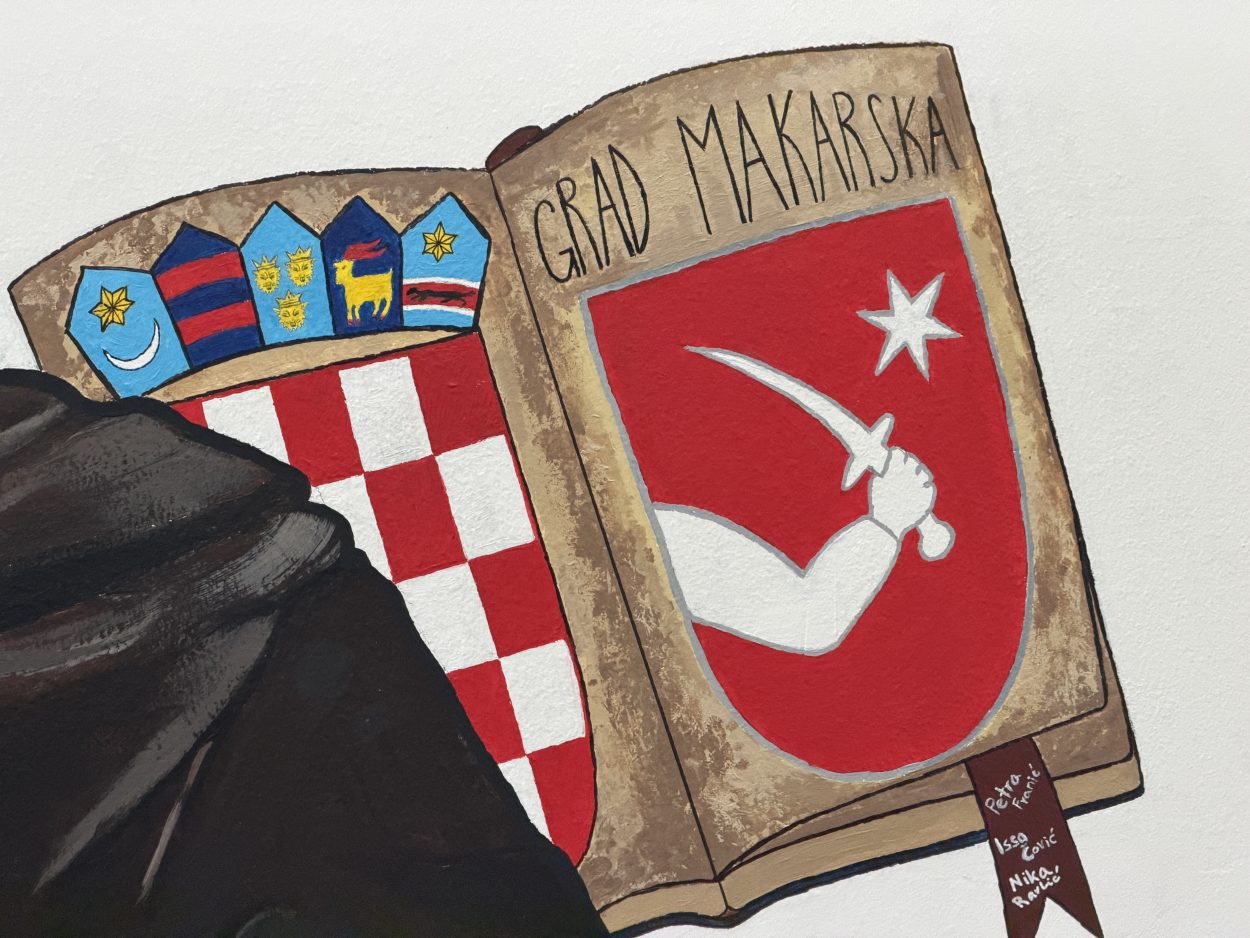 Razgovarala sam s profesoricama Lasić i Zelić i dogovorile smo da učenice u slobodno vrijeme dolaze u ured i rade na oslikavanju. Cijela koncepcija fra Andrije Kačića Miošića bila je njihova ideja. Osmislile su ga s knjigom u ruci, a uz njega su i grb Republike Hrvatske i grb grada Makarske, kao podsjetnik na prostor u kojem je djelovao. Ispod se nalazi i naziv naše škole, kazala je Evelin Bulić.