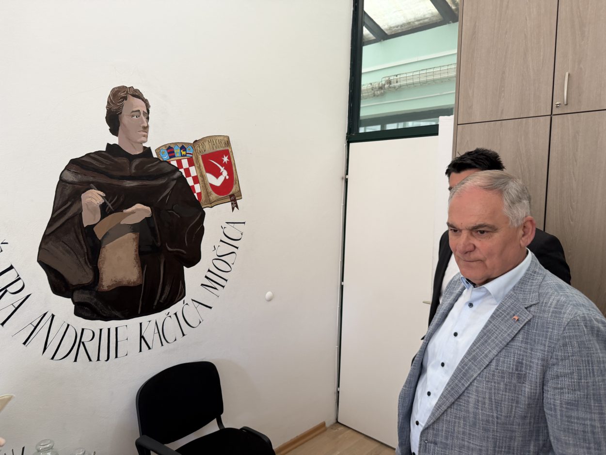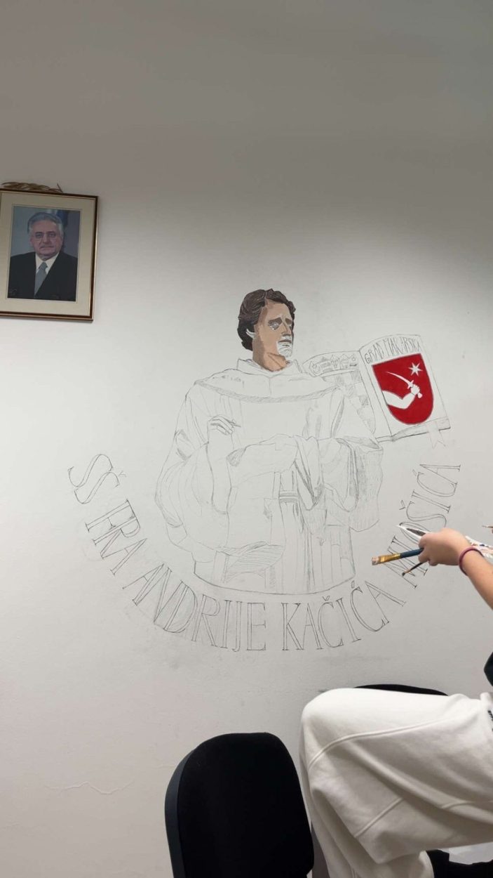 U Srednjoj školi fra Andrije Kačića Miošića u Makarskoj maturantice su ovih dana oslikale kabinet ravnateljice. Na zidu ureda nastao je mural s likom fra Andrije Kačića Miošića, čime je prostor dobio novi vizualni identitet povezan s imenom i tradicijom škole. Crtež je tijekom nedavnog obilaska škole, prilikom otvaranja radova na energetskoj obnovi, pokazan i županu Blaženku Bobanu, kojem se rad učenica posebno svidio.