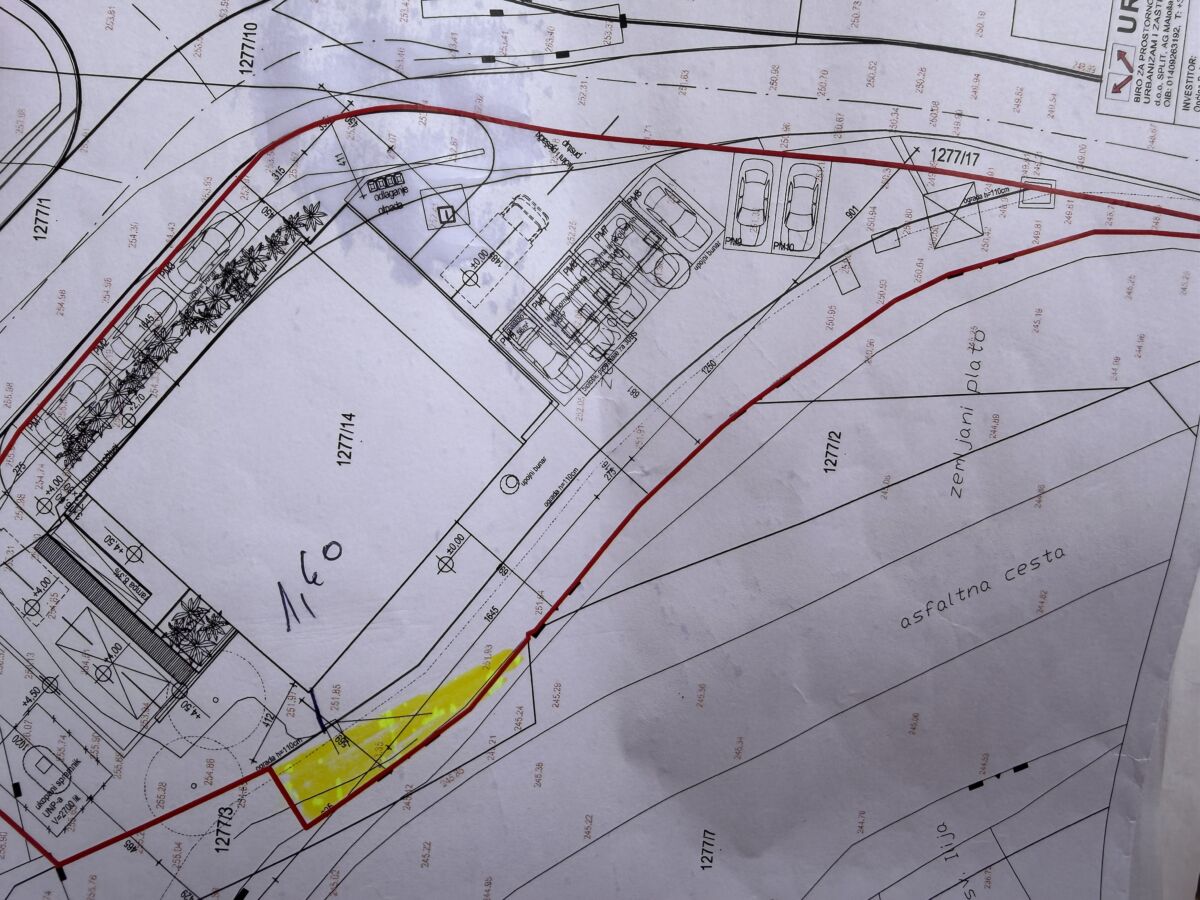 „Ovo je ta sporna parcela, evo ovdje, iznad ceste, a na planu je označena žutom bojom “, pokazuje.