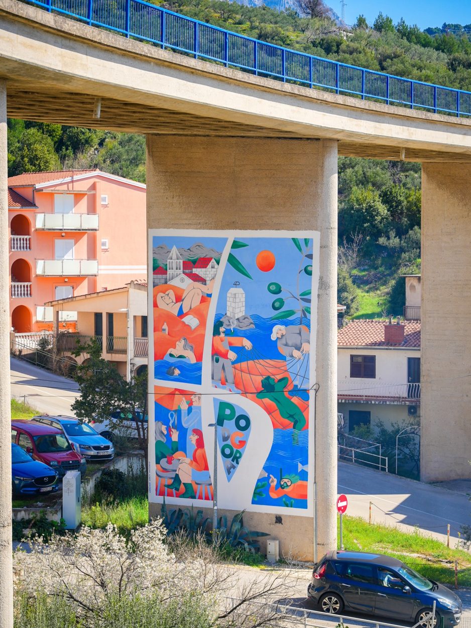 Novi mural Adriatic Phlegmatic nastavlja tu priču, spajajući motive mora, masline i dalmatinskog života u još jedan vizualni znak po kojem će Podgora biti prepoznatljiva.