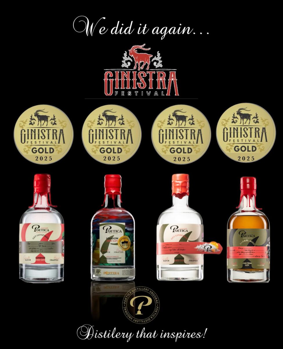 Među istaknutim sudionicima, Poetica destilerija ponovno je dokazala svoju iznimnu kvalitetu. Nakon prošlogodišnjih uspjeha, ove je godine osvojila čak četiri zlatne i tri srebrne medalje, uz prestižnu titulu najboljeg u kategoriji destiliranog gina.
