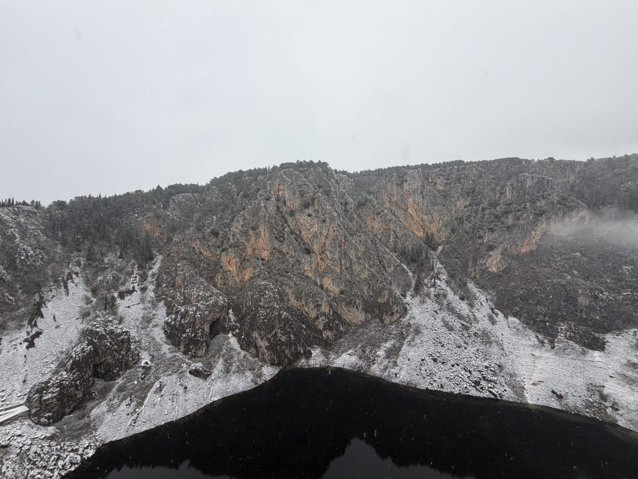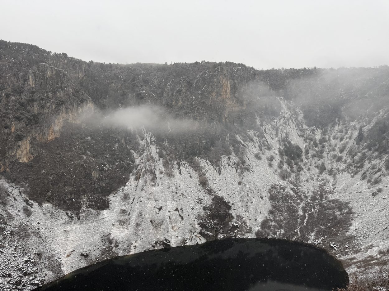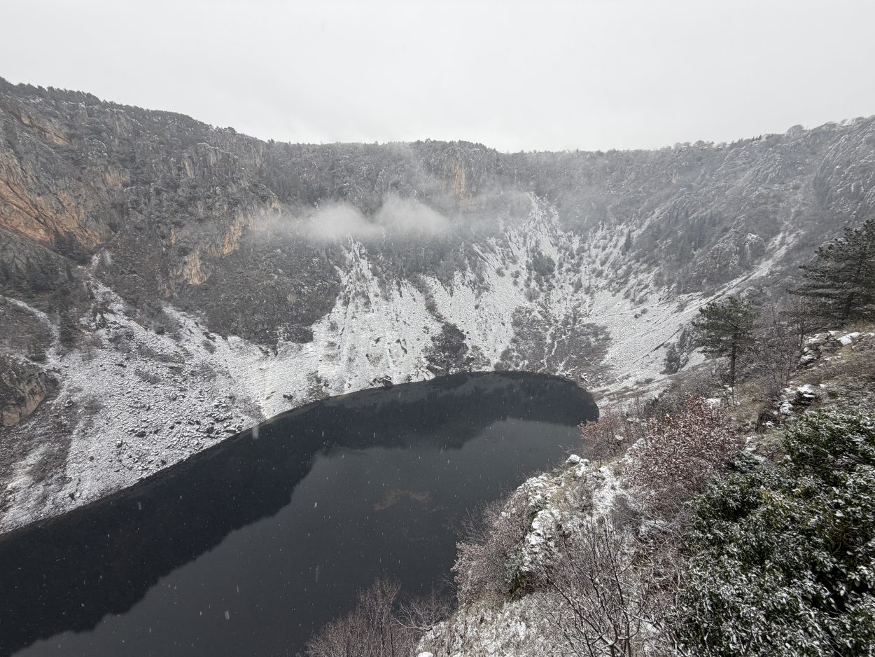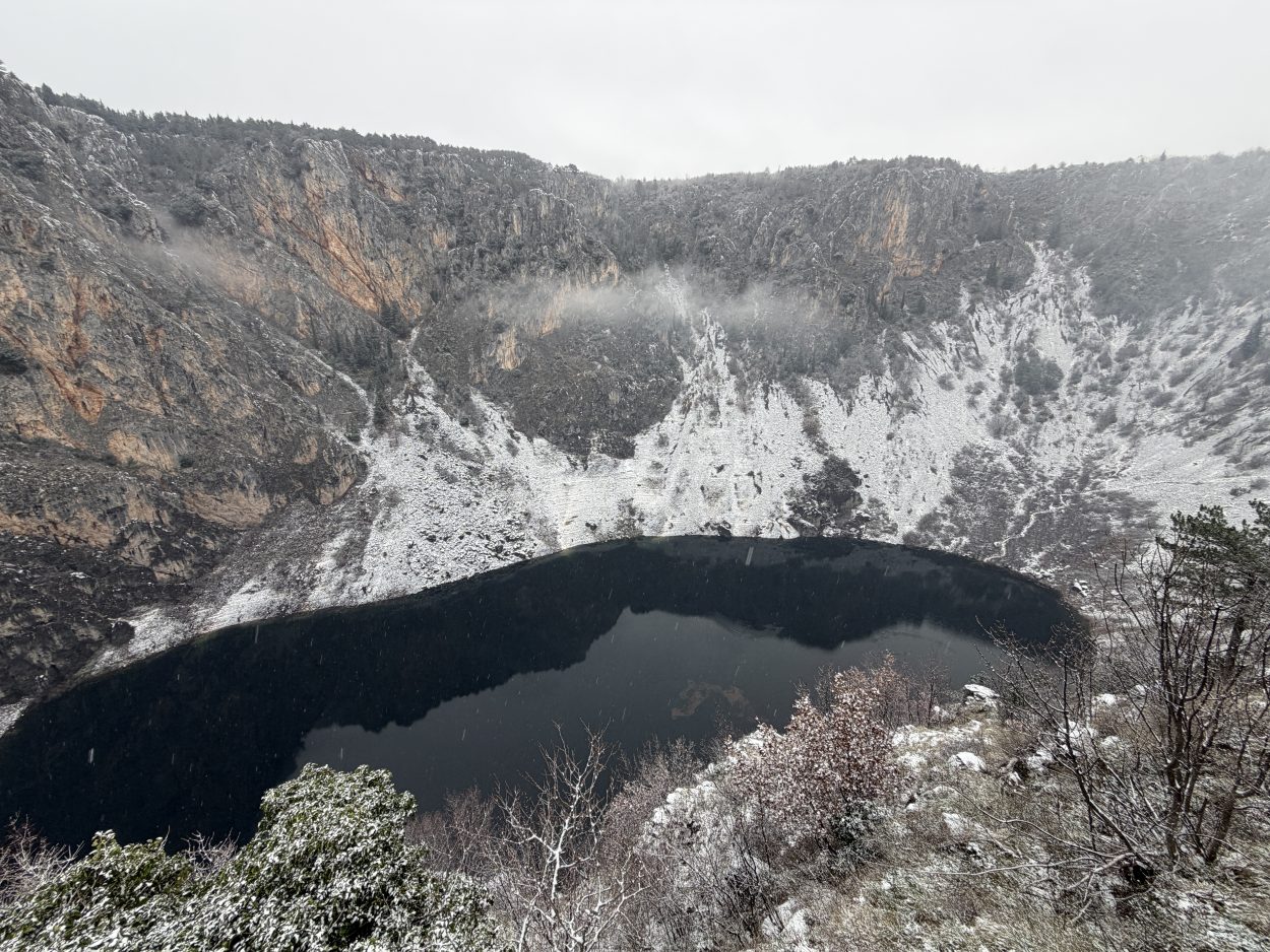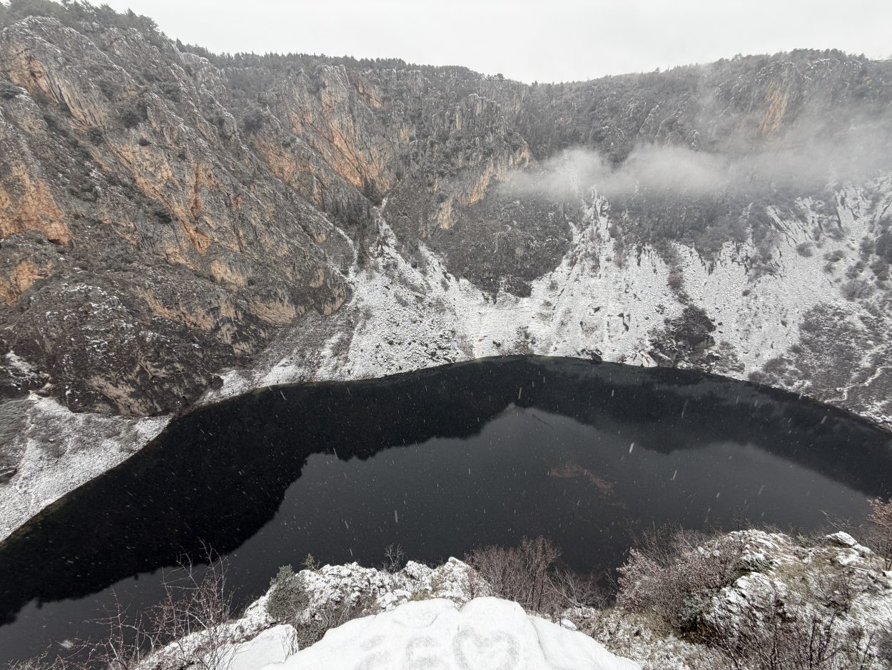 Prije mjesec i pol Modro jezero bilo je potpuno suho, s vidljivim kamenitim dnom. Obilne kiše koje su posljednjih dana pale na ovom području ubrzano su punile jezero, koje je danas, napunjeno vodom, dočekalo i prvi ovogodišnji snijeg.