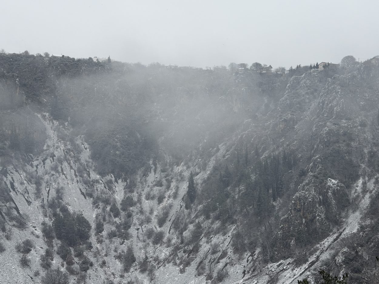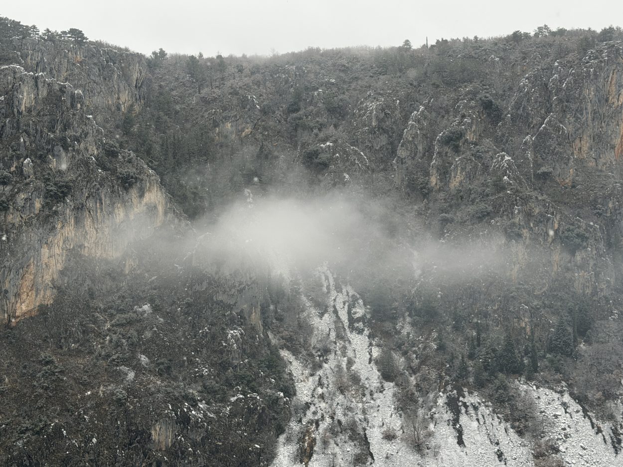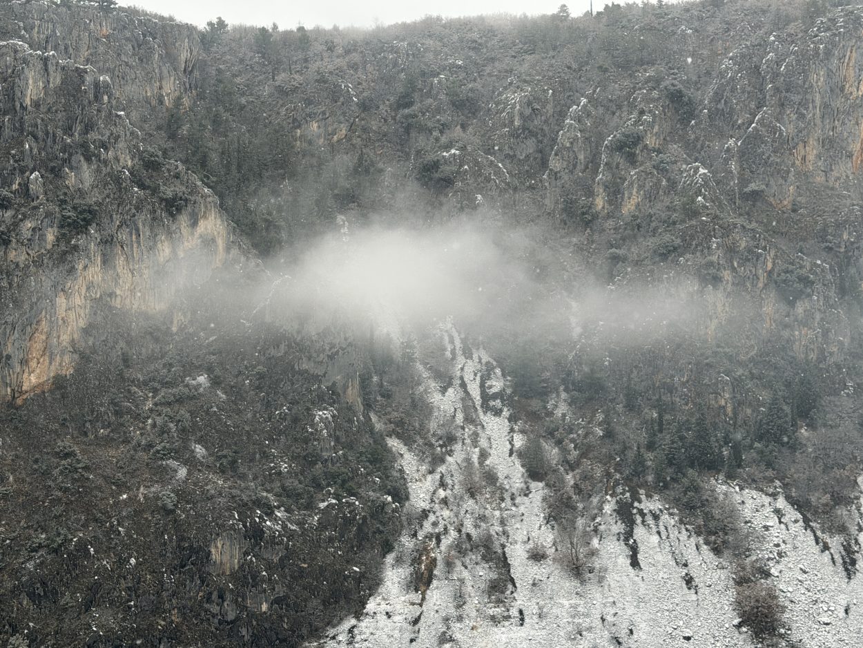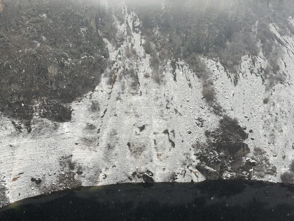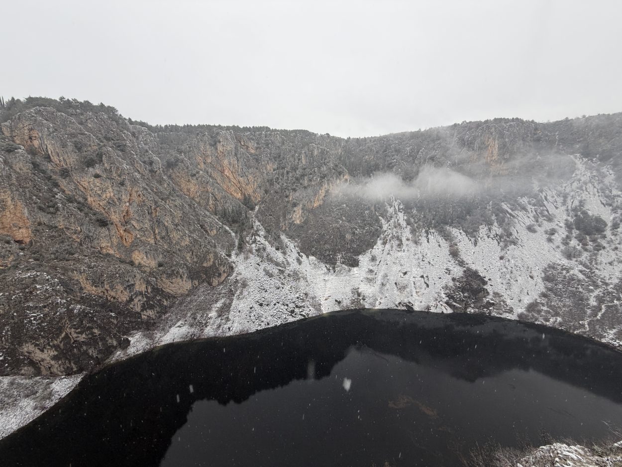 Prije mjesec i pol Modro jezero bilo je potpuno suho, s vidljivim kamenitim dnom. Obilne kiše koje su posljednjih dana pale na ovom području ubrzano su punile jezero, koje je danas, napunjeno vodom, dočekalo i prvi ovogodišnji snijeg.