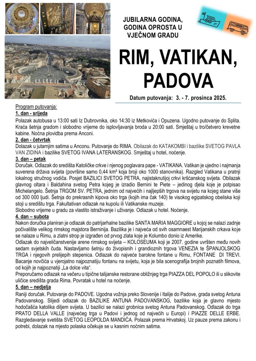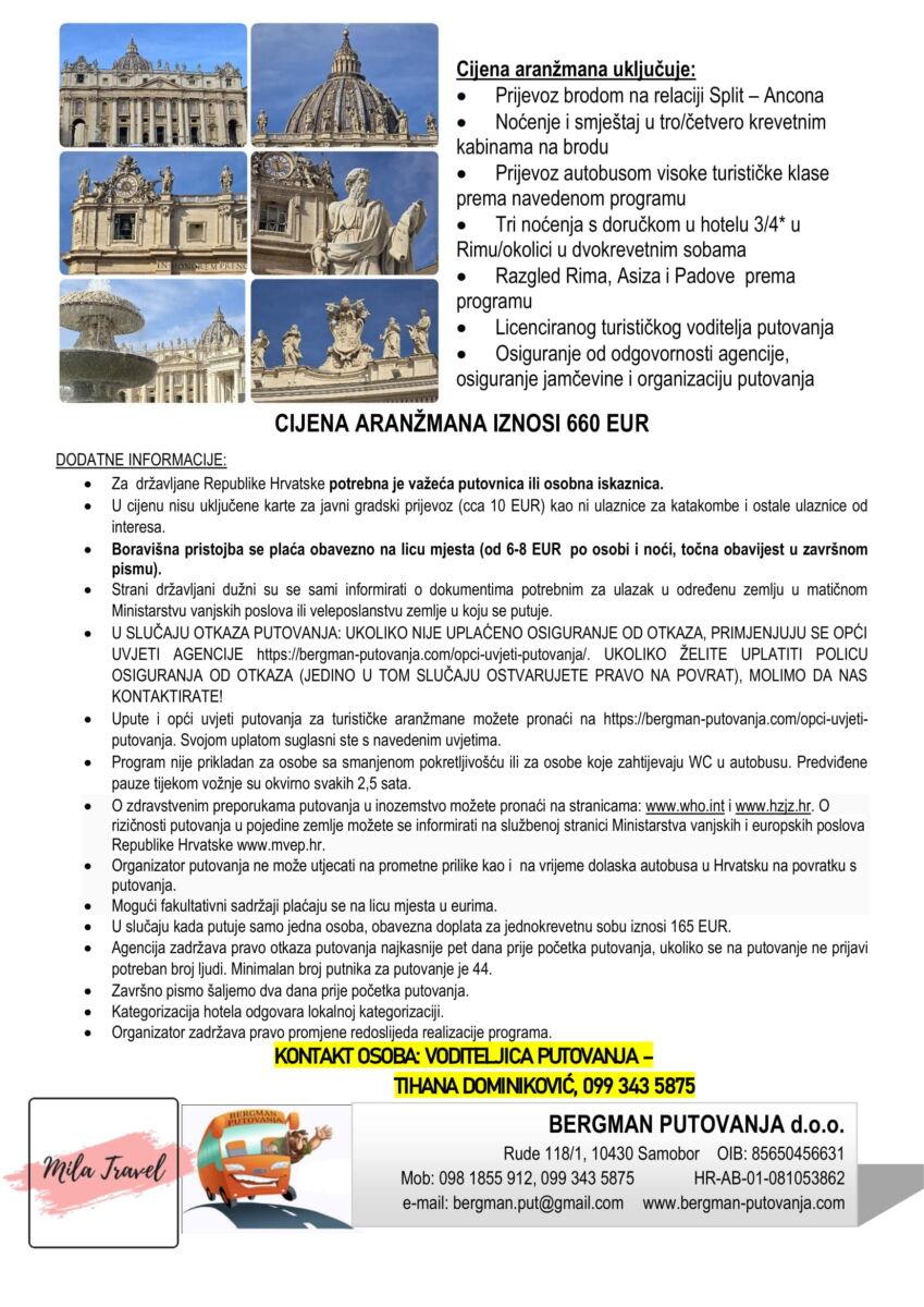 Turistička agencija Bergman putovanja organizira putovanje u Rim, Vatikan i Padovu, idealno za sve koji žele spojiti duhovnost, povijest i talijanski stil života.
