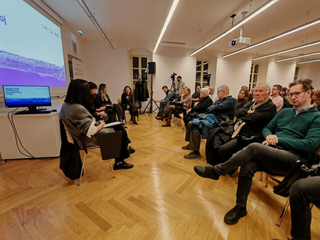 Nakon otvorenja izložbe ‘Druga revija arhitekture na Makarskoj rivijeri’ u Institutu Planina i more u Makarskoj, program je nastavljen razgovorom s arhitekticama.