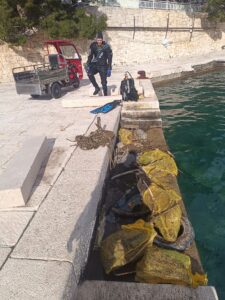 Tijekom 31 akcije u veljači i ožujku iz mora su izvučena tri kontejnera otpada, ukupnog volumena 19 kubika. Osim velikih komada otpada prikupljeno je i oko 200 žutih vreća sitnog otpada poput staklenih i plastičnih boca, tegli, čaša, krpa, spužvi, majica, sandala, čizama, ručnika i ribolovnog alata.