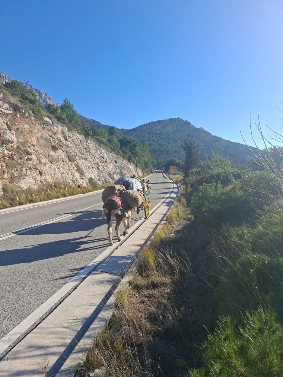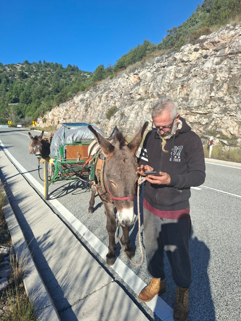 Njegovi vjerni pratitelji, magarci Titan i Roa, vuku kola natovarena osnovnim potrepštinama. Zajedno polako prolaze krajeve i zemlje, bez žurbe, prepuštajući se putu i onome što on donese. Čitatelji nam javljaju kako su ga vidjeli prije tri i pol mjeseca u Brelima, sredinom listopada i u Tučepima, a danas je stigao u Drvenik. Četrdesetak kilometara u nekoliko mjeseci dovoljno govori o njegovu tempu. Brzina ga ne zanima. Ide polako, onako kako put nalaže.