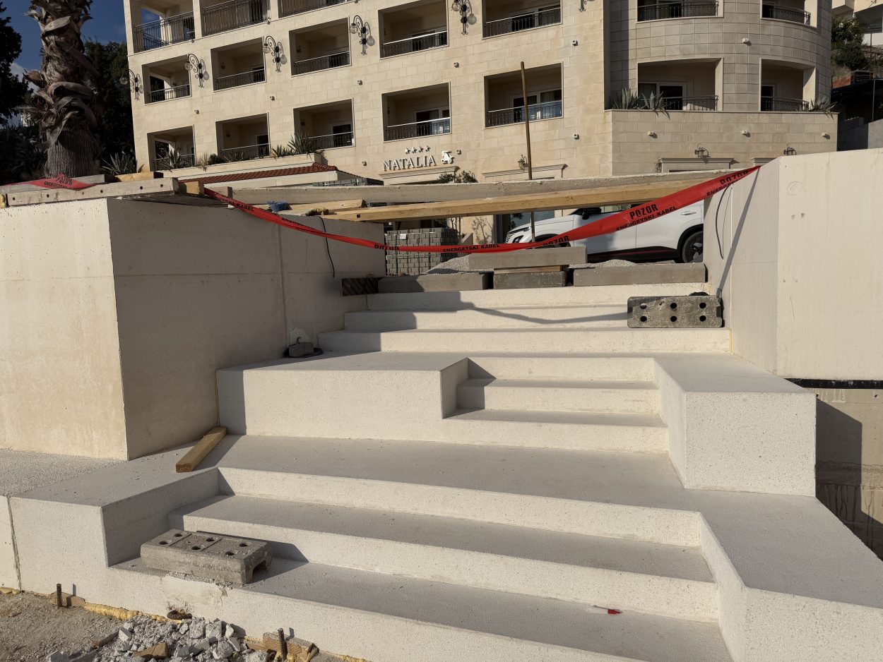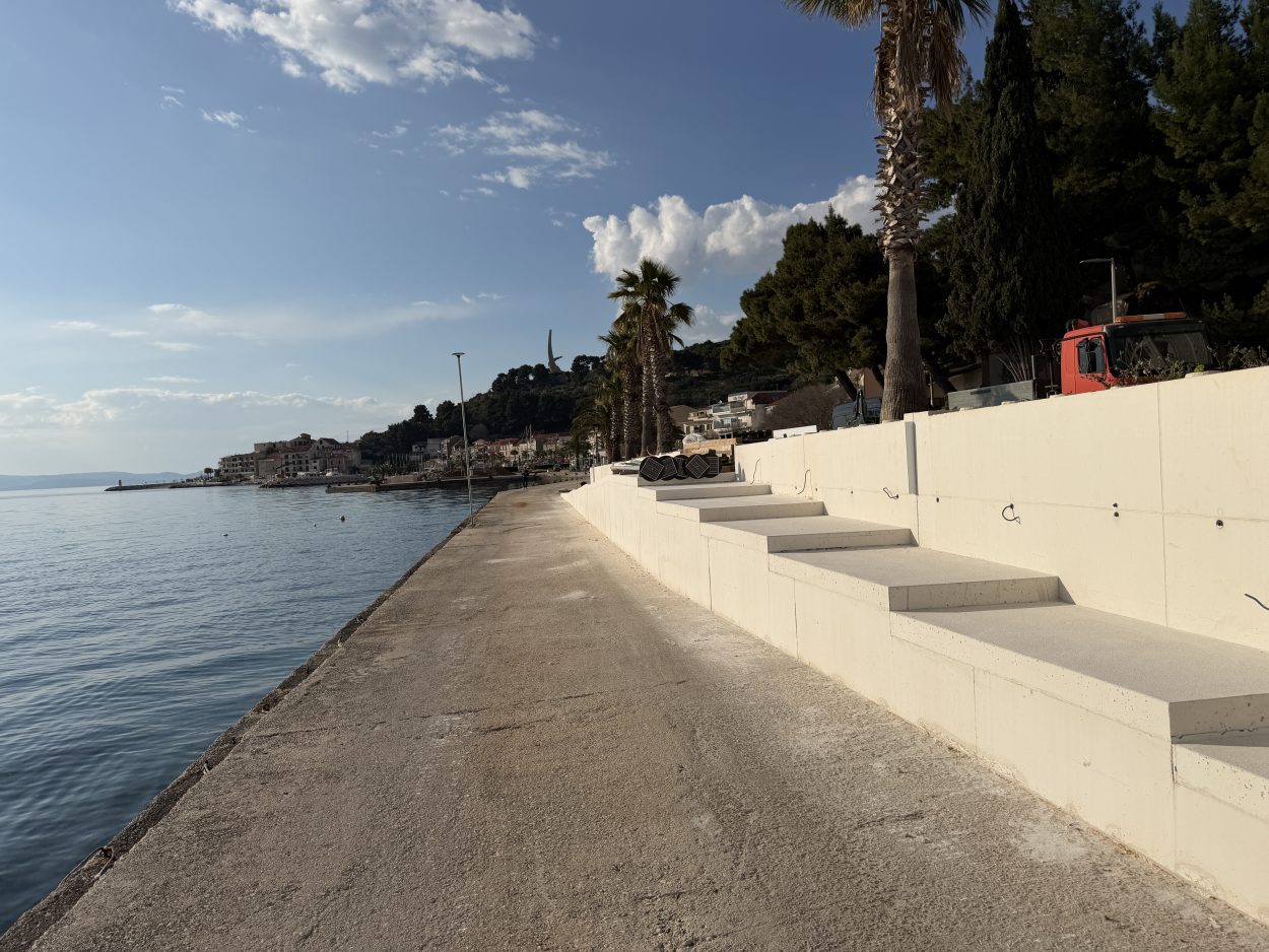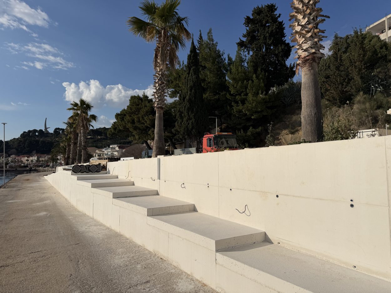 Trenutačno je sve spremno za postavljanje kamena, a radovi su ušli u završnu fazu. Po dovršetku projekta mjesto će dobiti nove skaline namijenjene sjedenju i odmoru, dok su palme već posađene.