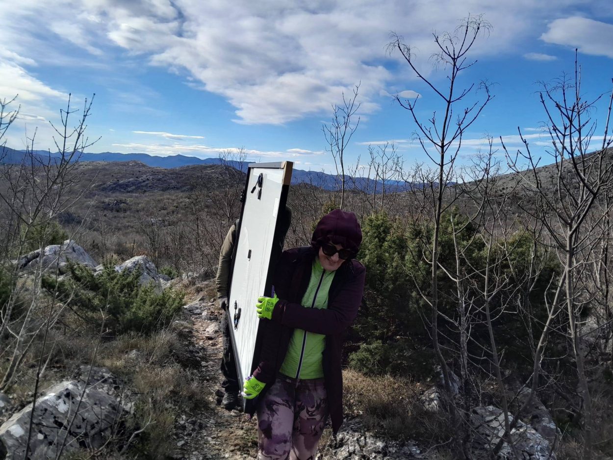 Projekt financira Hrvatski planinarski savez, a ovih dana članovi HPD Vrgorac odradili su zahtjevan dio posla, iznijeli su solarne panele i opremu od Bokšića do same kuće.