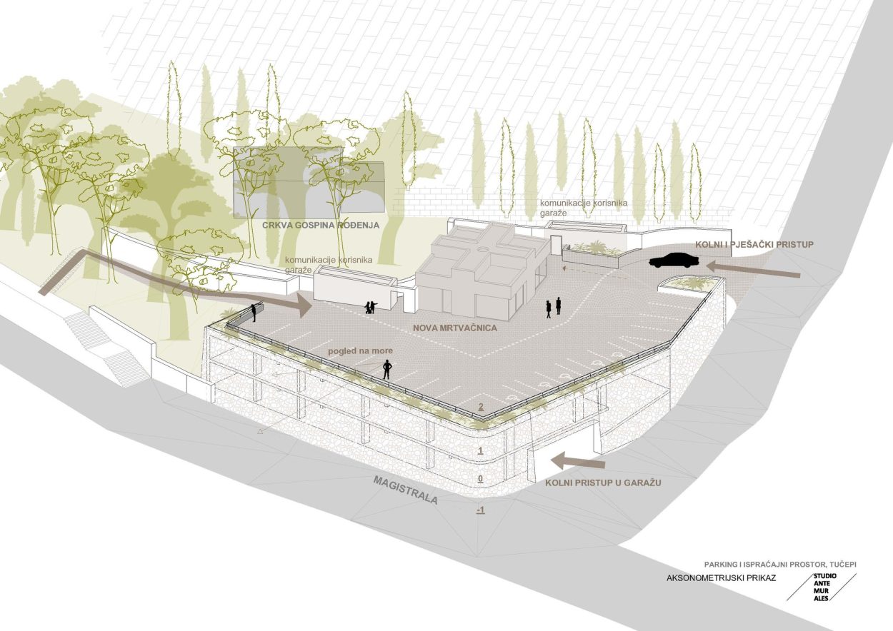 Osim same garaže, projekt predviđa i izgradnju nove mrtvačnice s ispraćajnim prostorom, arhitektonski oblikovane u formi križa, što daje dodatnu simboliku cijelom prostoru.