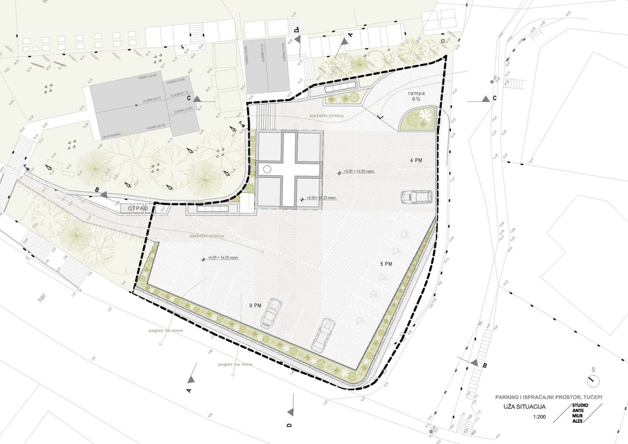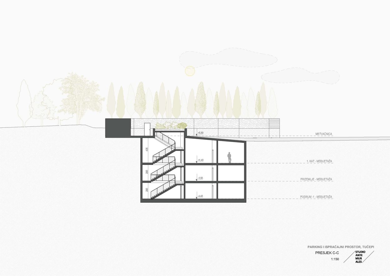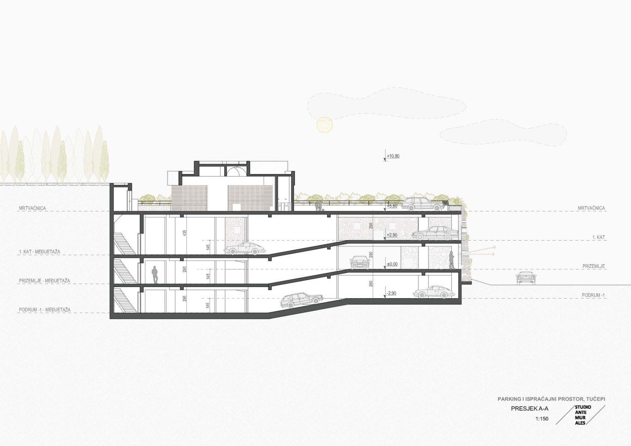 Parking će biti raspoređen na tri etaže, jedna podzemna i dvije nadzemne. U garaži će biti oko 80 parkirnih mjesta, dok će ih dio biti i na krovu. Iznad toga gradi se mrtvačnica s ispraćajnim prostorom, čime se dobiva cjelovito rješenje za ovu zonu, dodao je Vjeko Šimić.