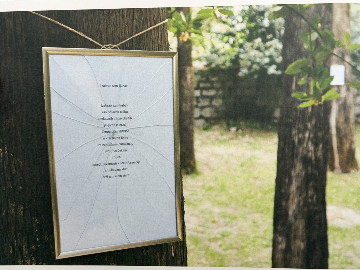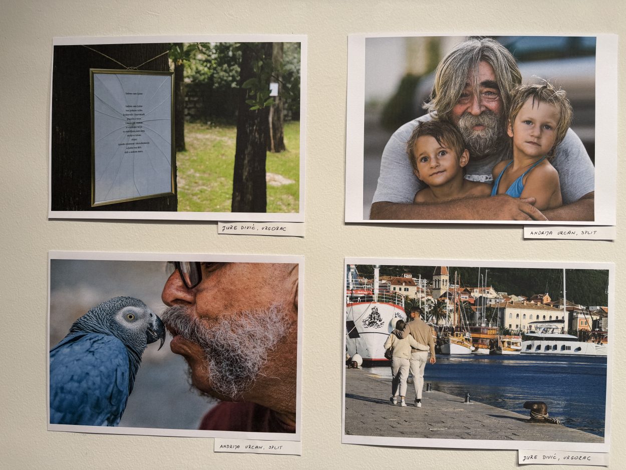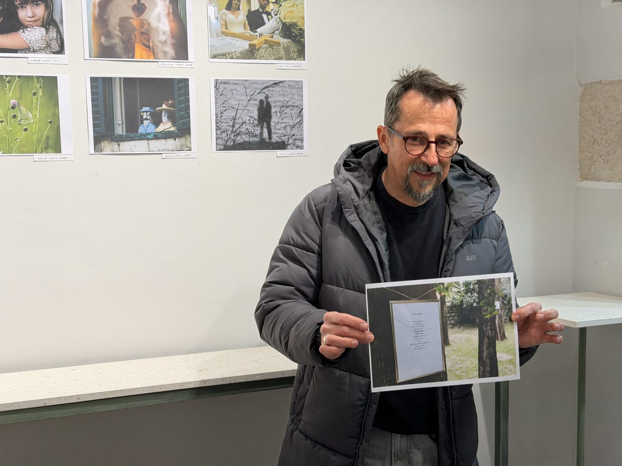 “Ta fotografija bila je dio projekta u Vrgorcu gdje sam u parku postavio četrdesetak isprintanih ljubavnih pjesama na stabla uz stazu. Nažalost, sve je bilo razbijeno i uništeno, ali upravo je ta izložba sada u Splitu u knjižnici Marka Marulića” rekao nam je Jure Divić.