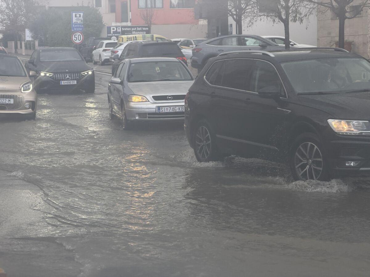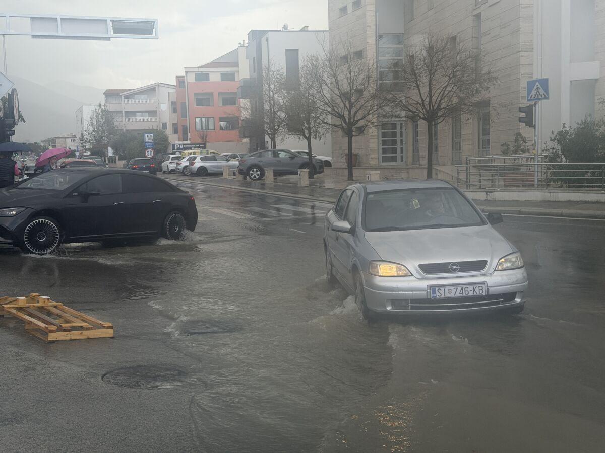 Obilna kiša koja je danas pala u kratkom vremenu potopila je dijelove grada. Ulice su se pretvorile u potoke, automobili su ostajali zarobljeni u križanjima, a šahte su izbijale iz ležišta.