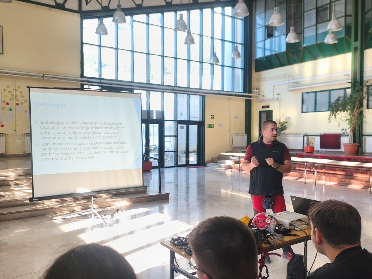 Predavanje je organizirala prof. Ana Franković Vranješ u suradnji s Igorom Saljivanovom, članom speleološkog društva Meandar, koji je učenicima približio svijet speleologije i važnost istraživanja podzemlja.
