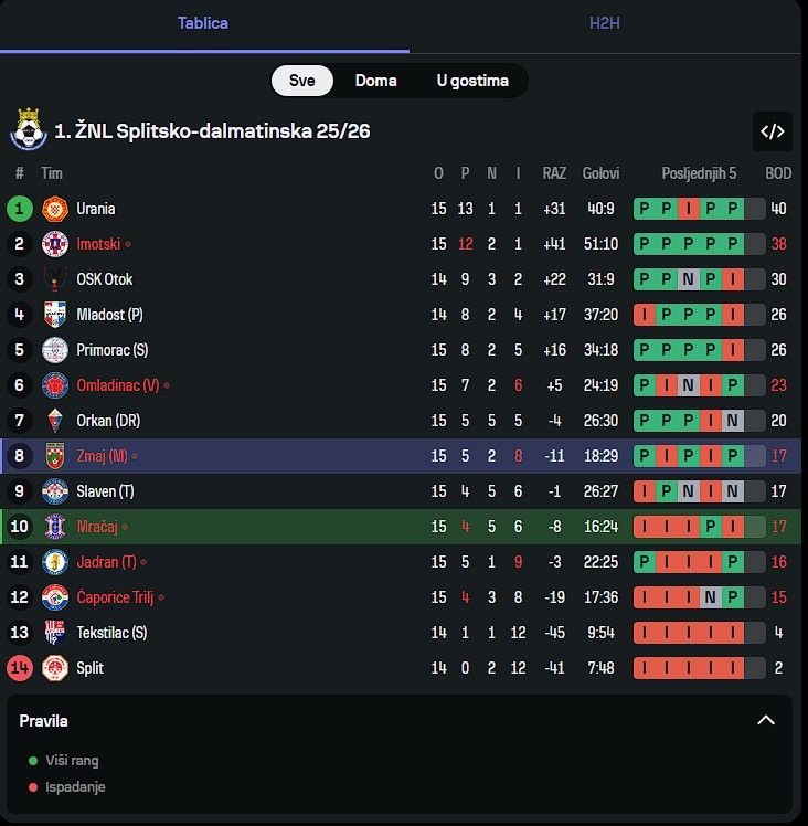 Ovom pobjedom Urania ostaje na vrhu ljestvice s 40 bodova, dva više od Imotskog, i potvrđuje stabilnost u borbi za naslov.