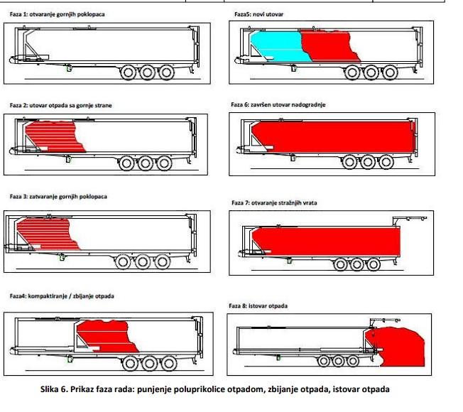Otpad prikupljen komunalnim vozilima dopremat će se u pretovarnu stanicu, gdje će se miješani komunalni otpad preko nadzemne rampe pretovarivati u poluprikolice velike zapremnine. U njima će se otpad sabijati radi smanjenja volumena prije odvoza u Centar.