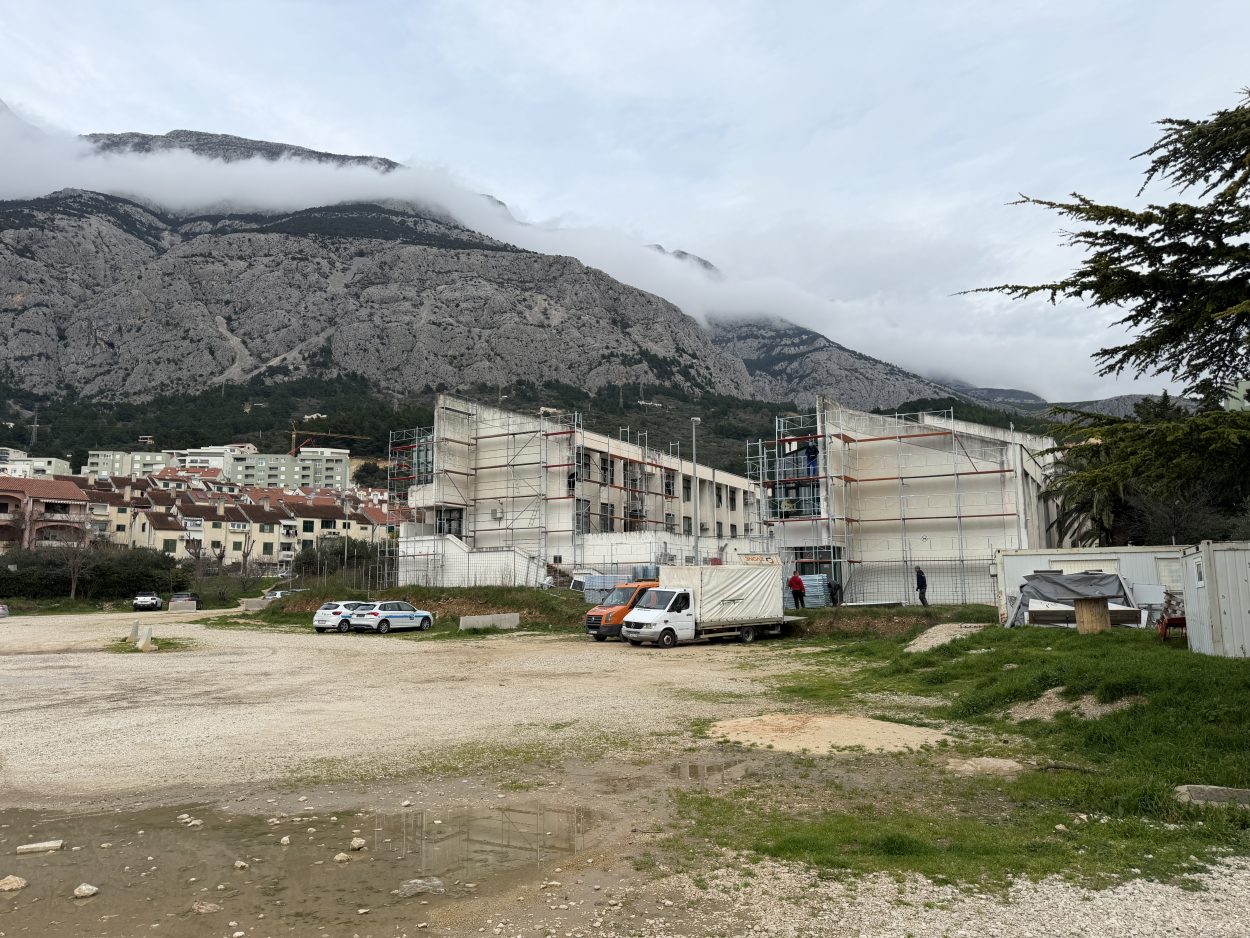 Radnici su krenuli s postavljanjem skele, čime je započeo zahtjevan projekt obnove koji bi trebao trajati nešto više od godinu dana. Riječ je o sveobuhvatnoj energetskoj sanaciji objekta u kojem se nalaze dvije srednje škole te dio osnovne škole, a nastavu pohađaju učenici s cijele Makarske rivijere.